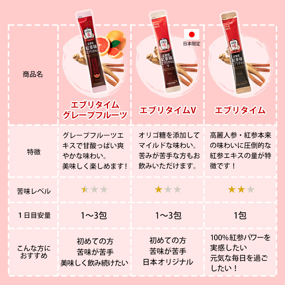 紅参精エブリタイムより、柑橘系の味があるので、とても飲みやすいです。これなら長く続けられそうです。
